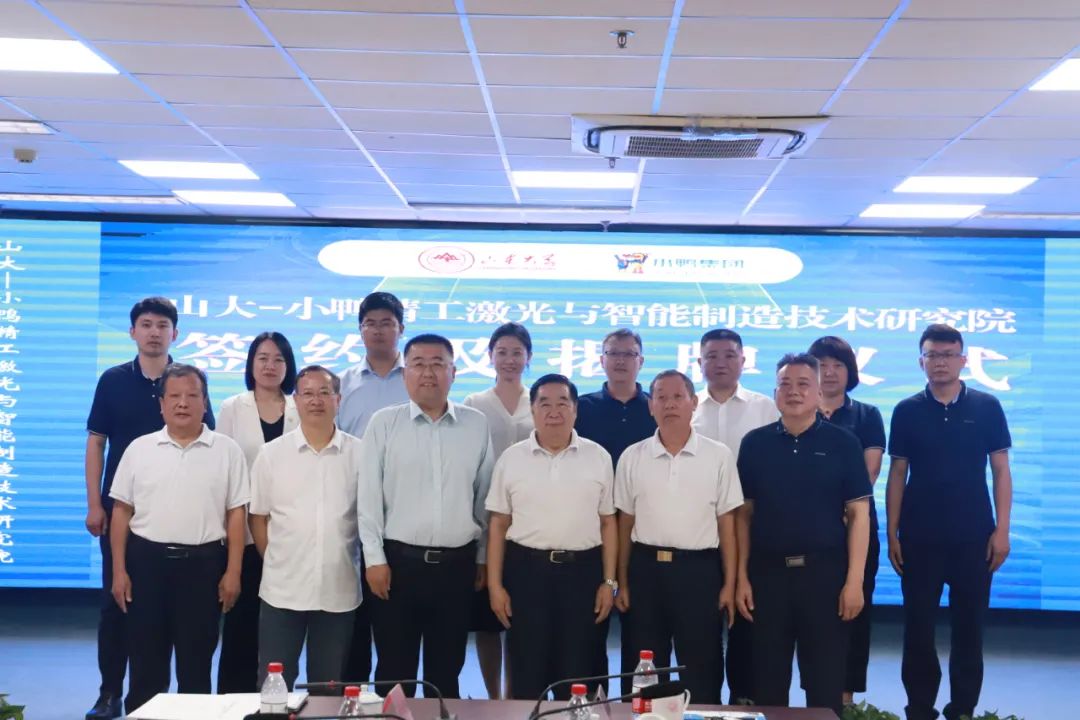 小鴨細致黨組織布告、總司理王前峰和福建師范大學張承瑞實踐經驗搭配簽訂合同山大-小鴨精密繳光與智力設計制作一技之長研討會院聯建和談。